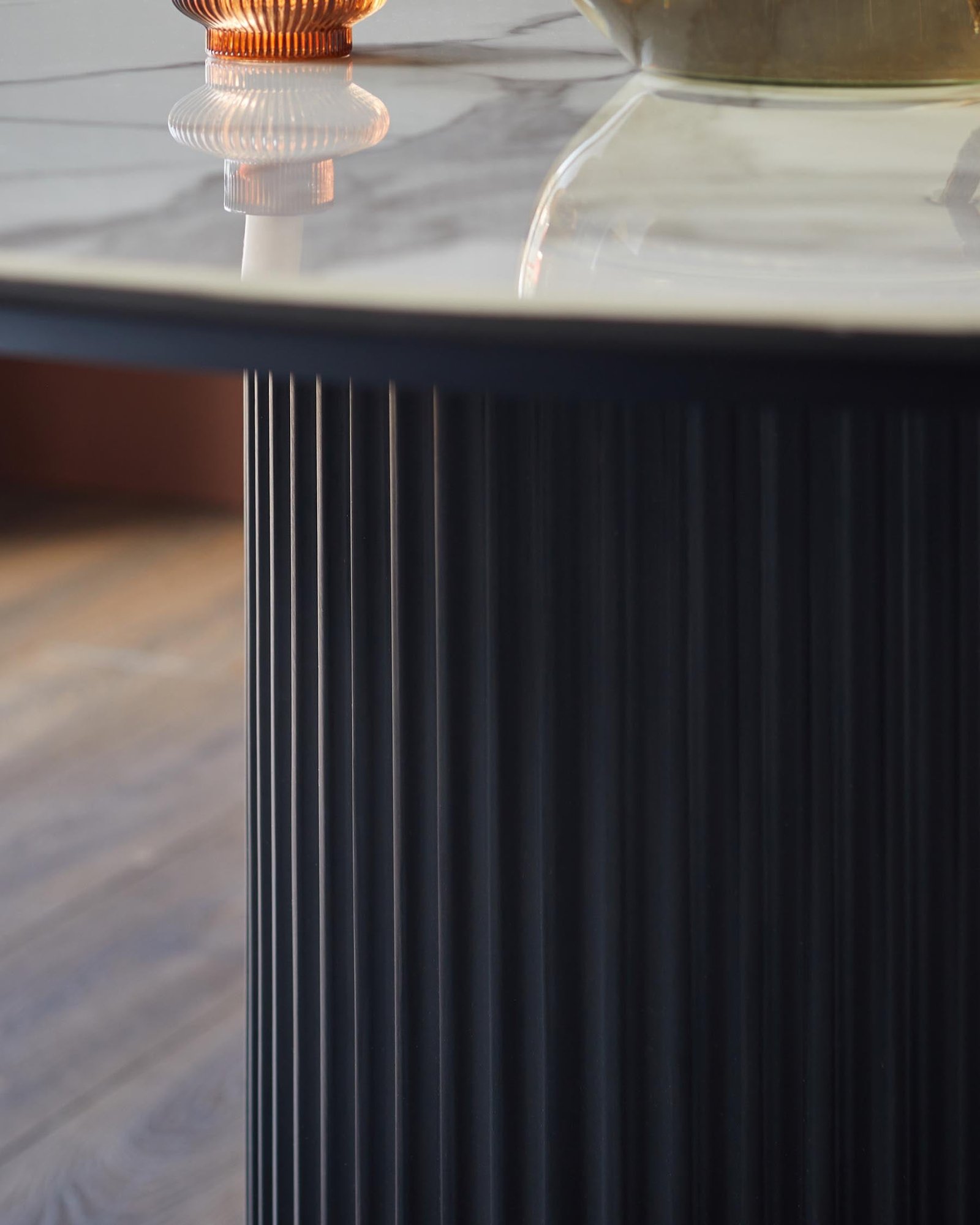 • Elegant fluted pedestal base in wood finish