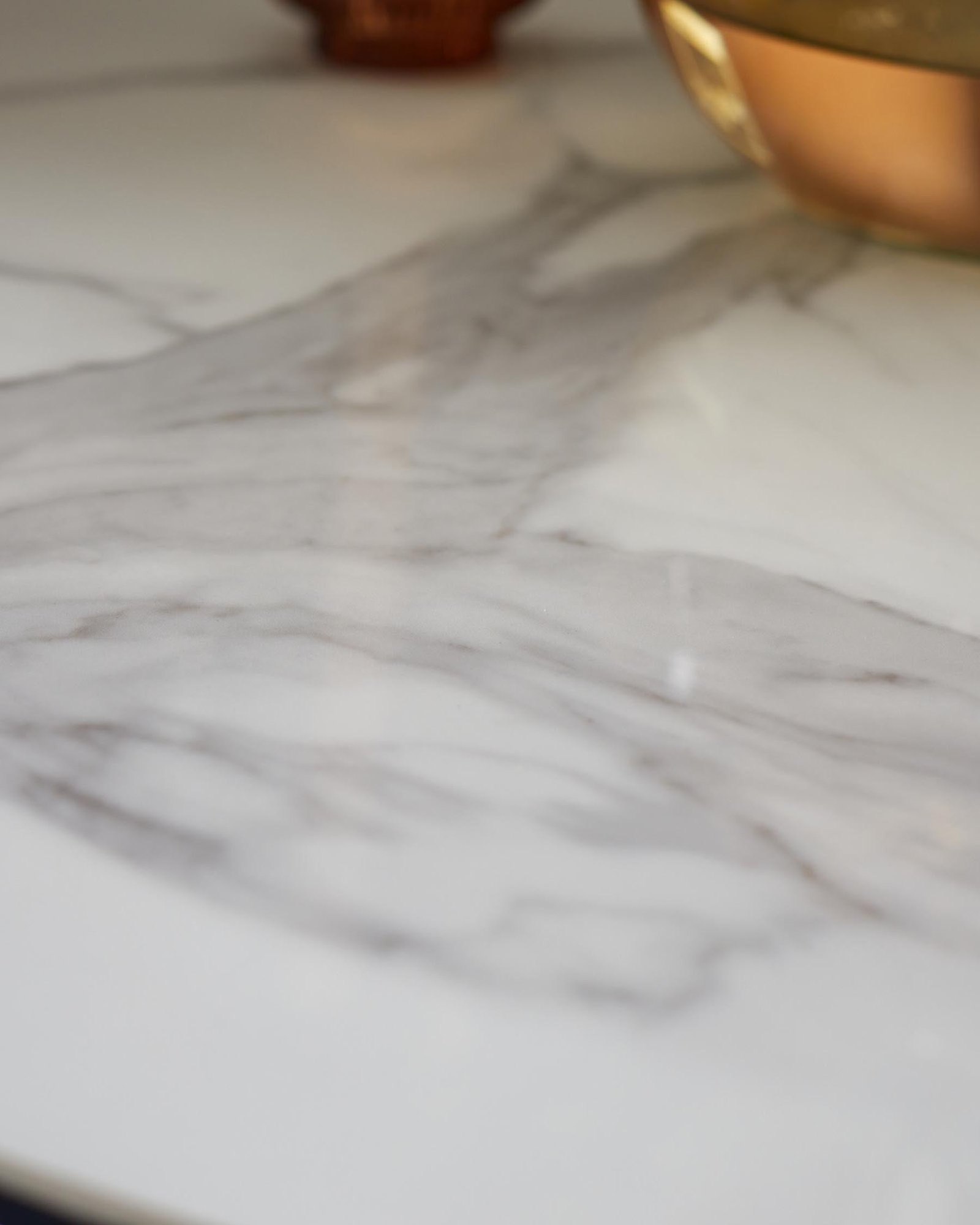 • Glossy white ceramic top with marble-like finish