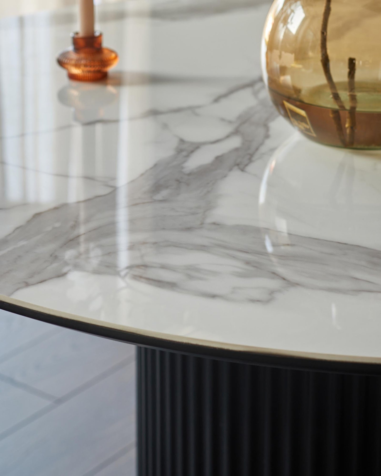 Thoughtfully designed for gatherings that matter, the Austin white ceramic 6 seater dining table brings sophisticated style to your dining space. Its glossy white ceramic top offers the luxurious look of marble with everyday practicality – heat-resistant, scratch-resistant and effortlessly easy to clean. The elegant fluted pedestal base maximises legroom whilst creating a striking centrepiece for memorable meals.