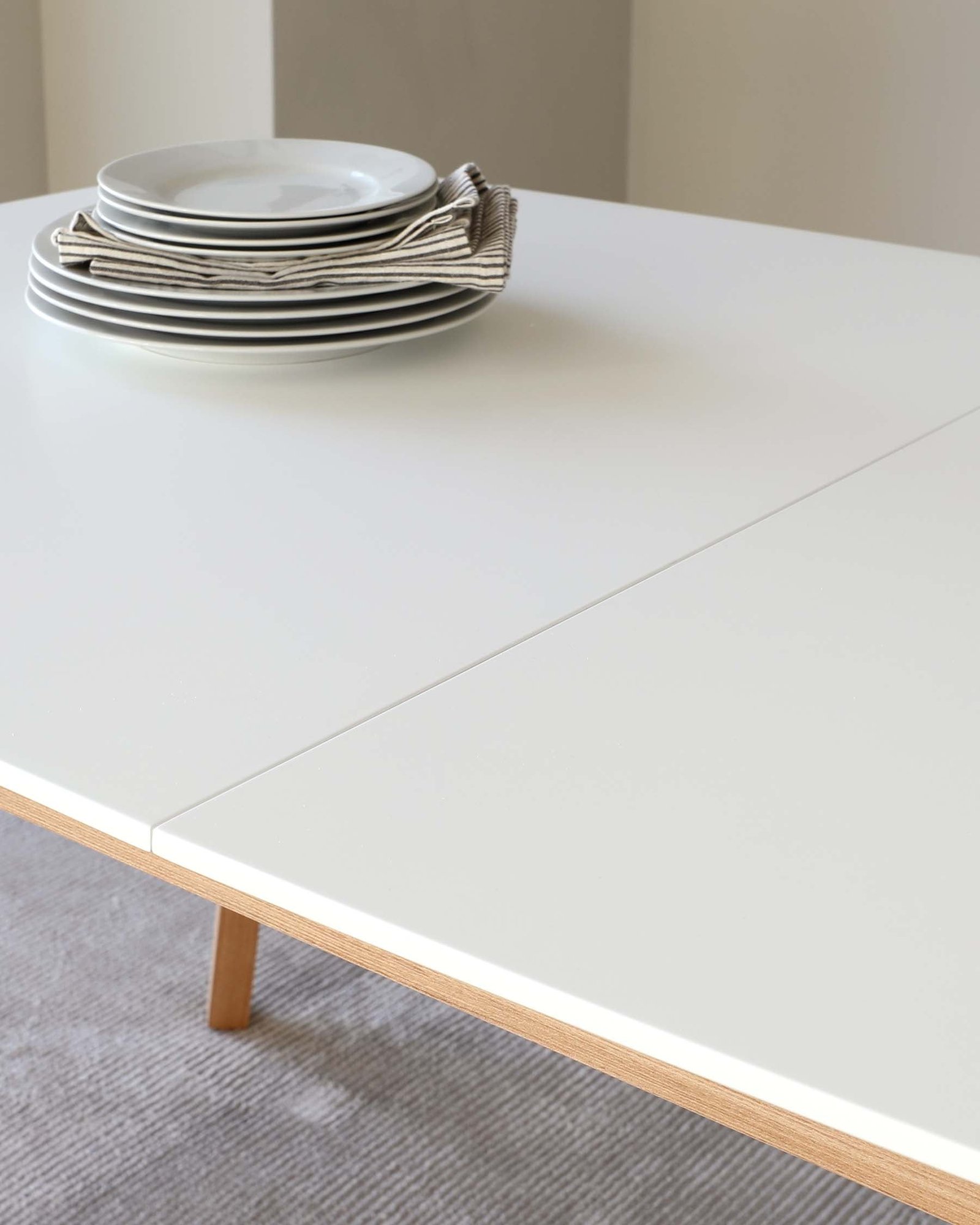 The Aver extending dining table brings Scandinavian simplicity to your dining space with its fresh white top and warm oak legs. Perfect for those impromptu dinner parties, it extends from 6 to 8 seats in seconds using a cleverly concealed butterfly leaf. The rounded corners and angled legs create a softer, contemporary look that works beautifully in modern homes.