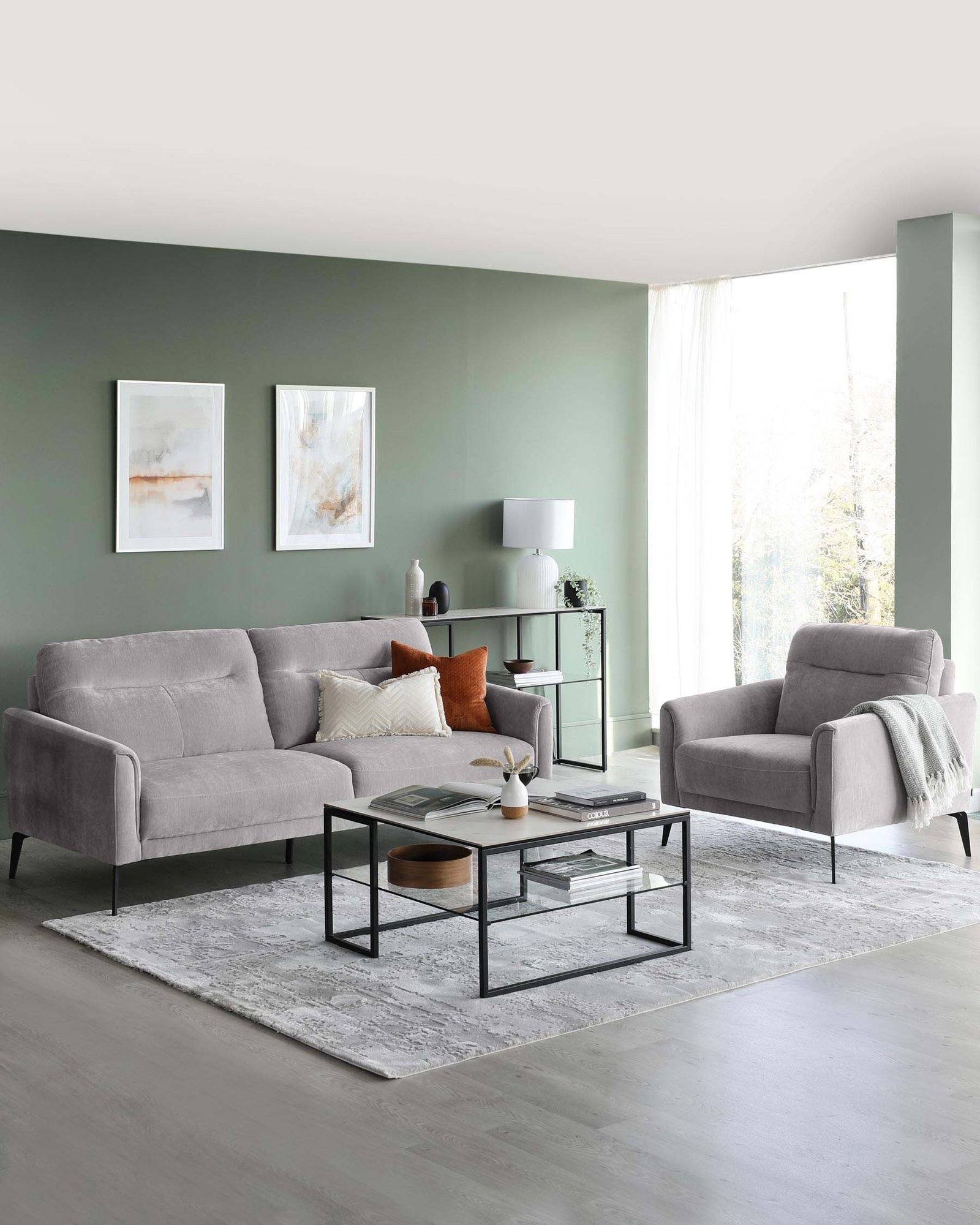 The Brooks light grey fabric armchair brings relaxed sophistication to any room with its clean lines and subtle curves. Upholstered in sumptuous, durable fabric, this modern armchair features distinctive pleated detailing and sleek metal legs. Perfect for living rooms, bedrooms or creating a quiet reading corner where comfort meets contemporary style.