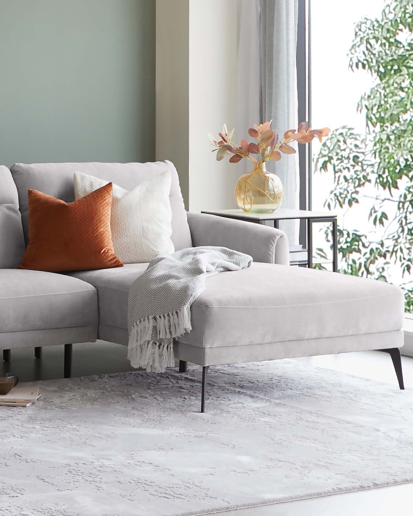 Brooks Light Grey Fabric Right Hand Corner Chaise Sofa
