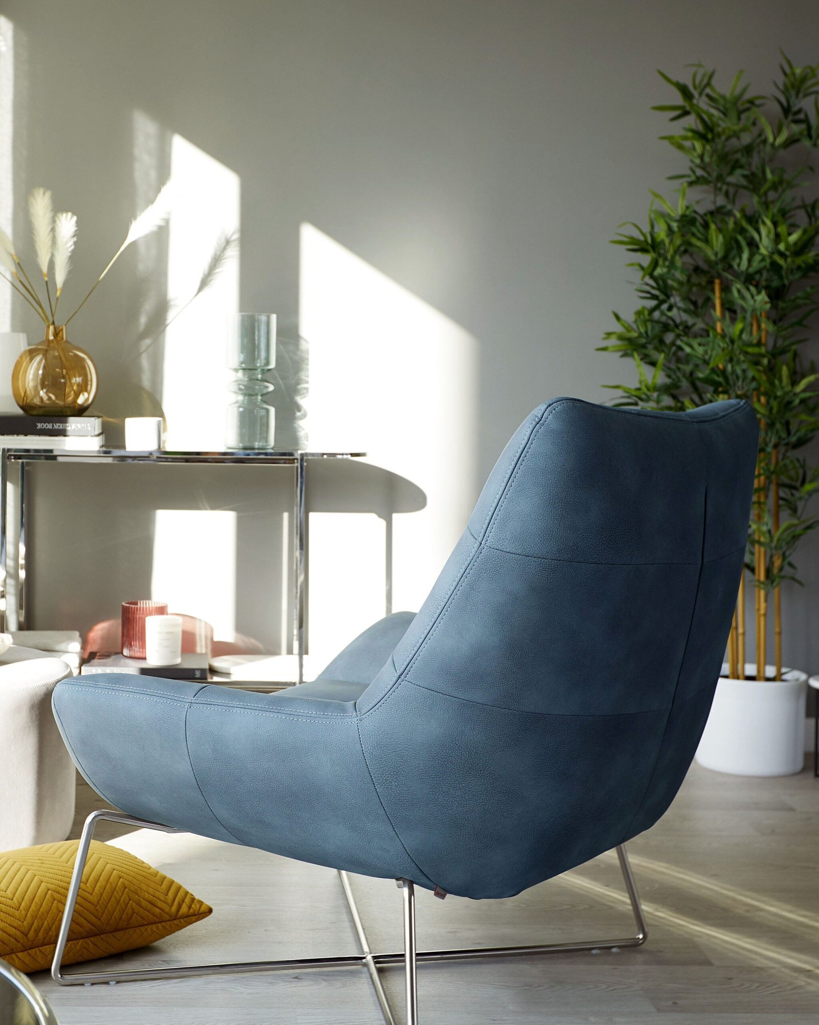 Thoughtfully designed for those moments when you need your own space, the Canio navy faux leather accent chair brings sophisticated comfort to any corner. Its quilted upholstery and curved silhouette create an inviting retreat, while the stainless-steel base adds contemporary elegance. Perfect for reading nooks, bedrooms or adding extra seating when life gathers.