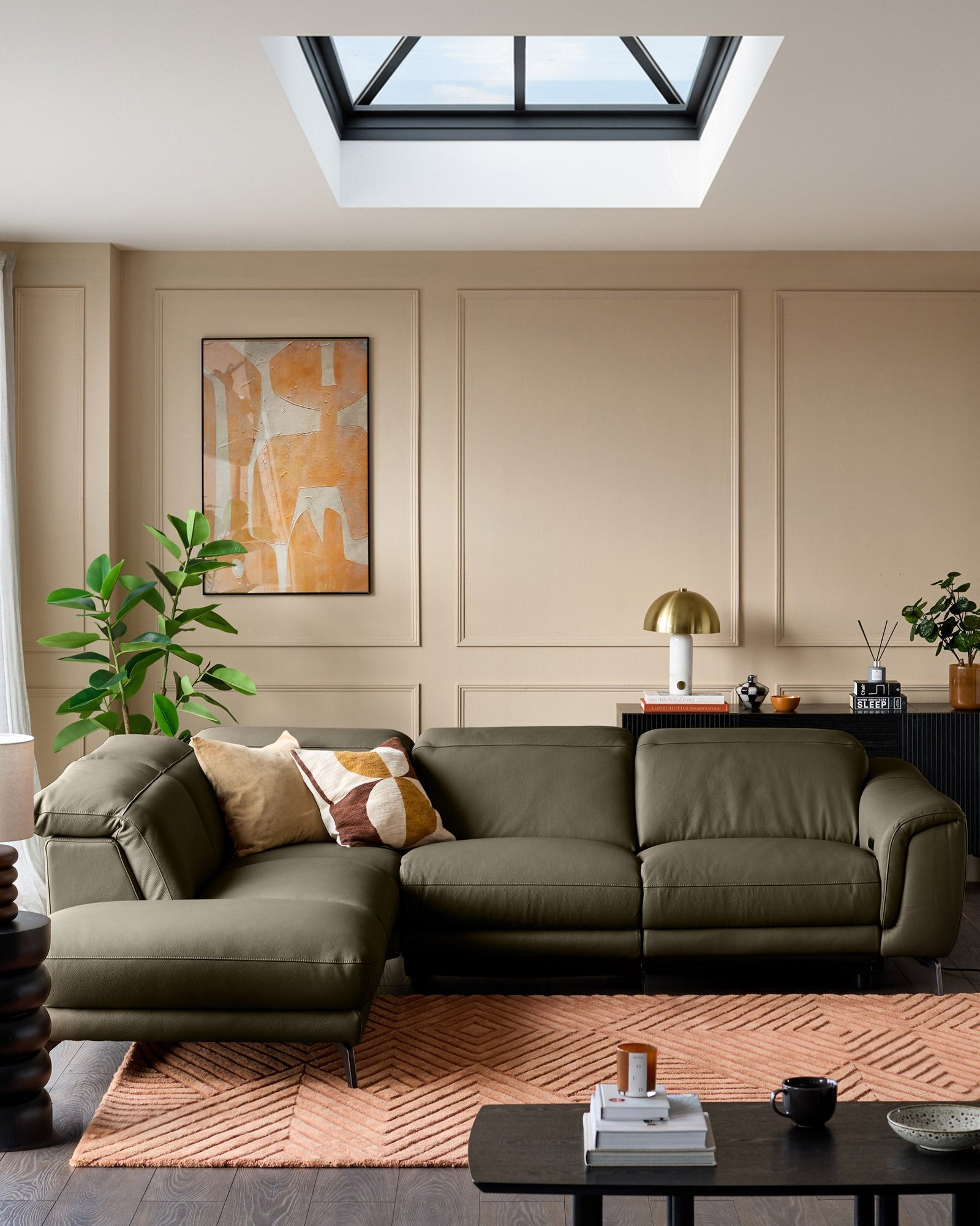 The Connor olive green leather left hand corner sofa brings sophisticated comfort to your living space with its rich leather upholstery and smart electric reclining feature. Sink into premium natural luxe leather whilst adjusting the footrest and headrest at the touch of a button. The integrated USB-C port keeps devices charged, making this exclusive design perfect for modern living.
