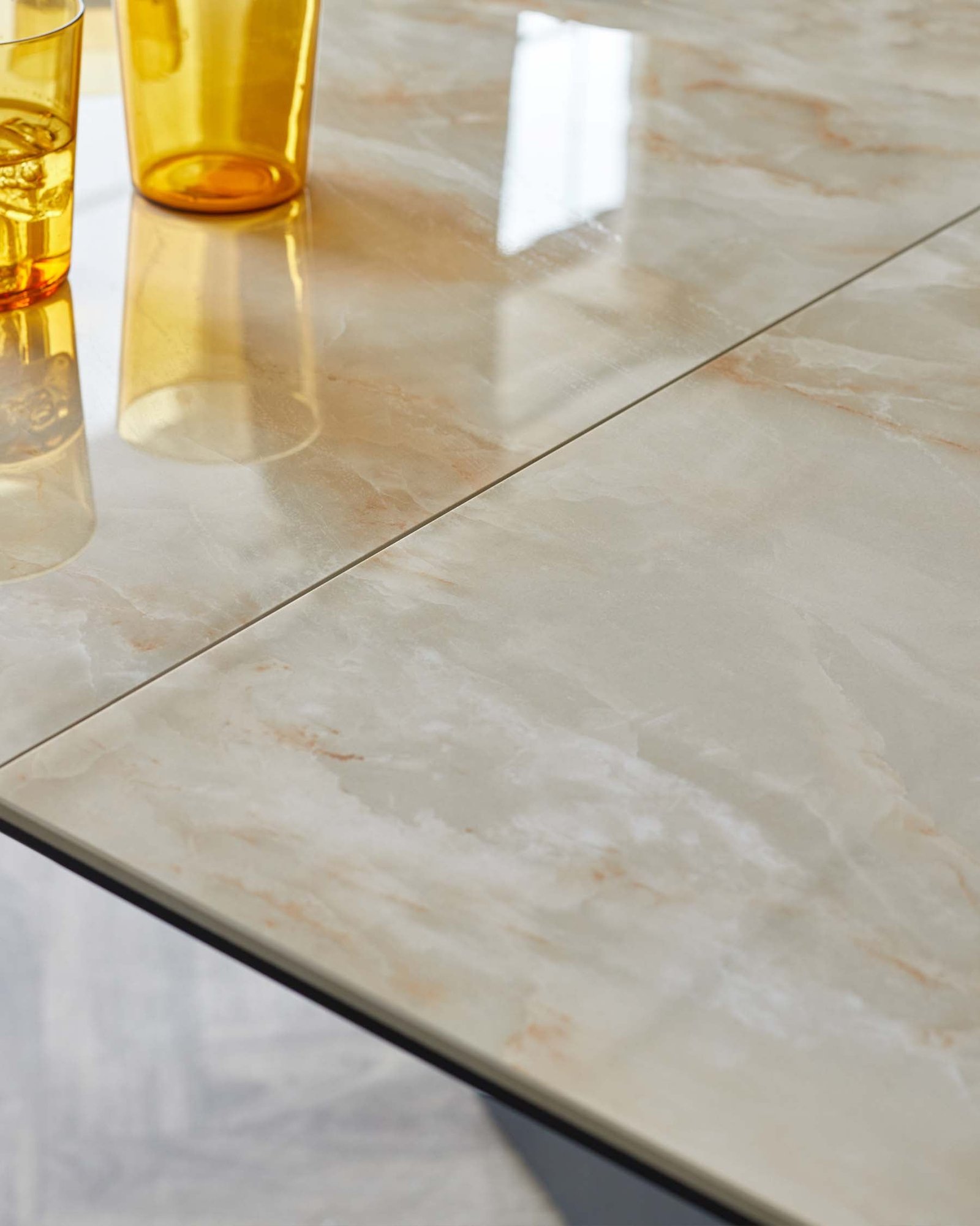 • Natural ceramic tabletop with tempered glass for dual strength