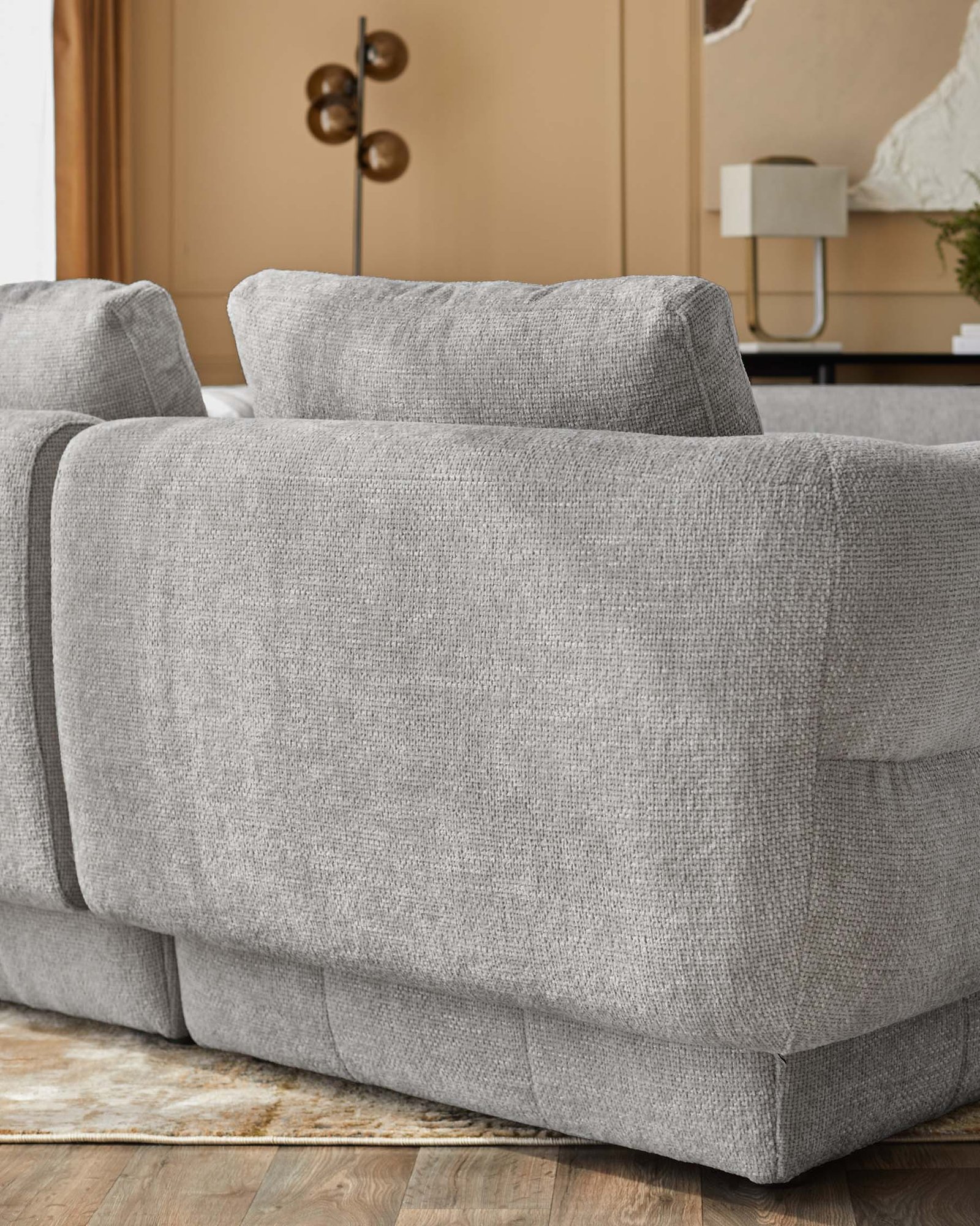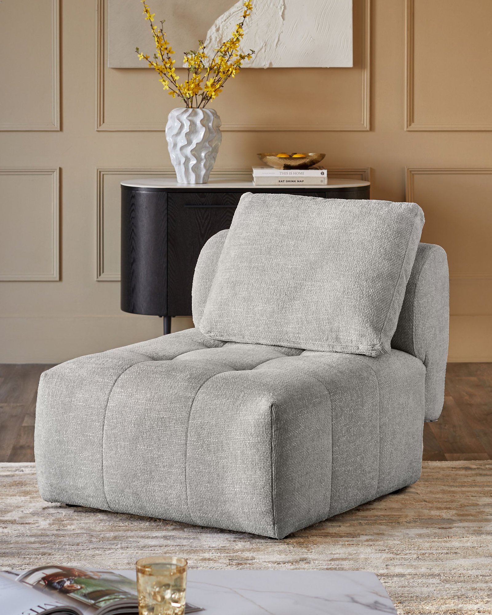 Create your perfect sofa, one module at a time. The Lillian light grey fabric sofa module brings flexible comfort to modern living with its wrap-around design and gentle curves. Whether styled solo as a generous armchair or combined with other modules to build your ideal configuration, this piece adapts as your needs change over time.