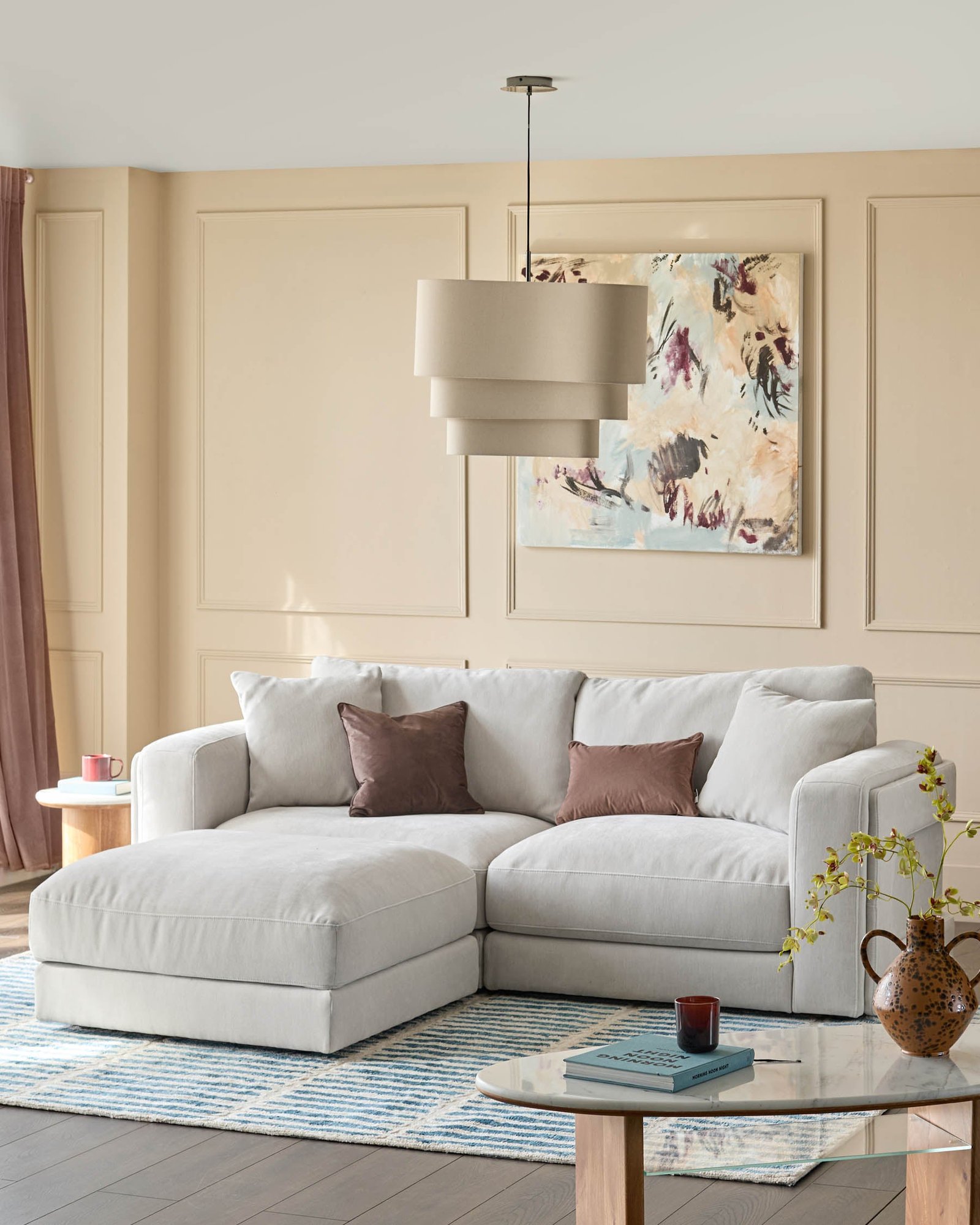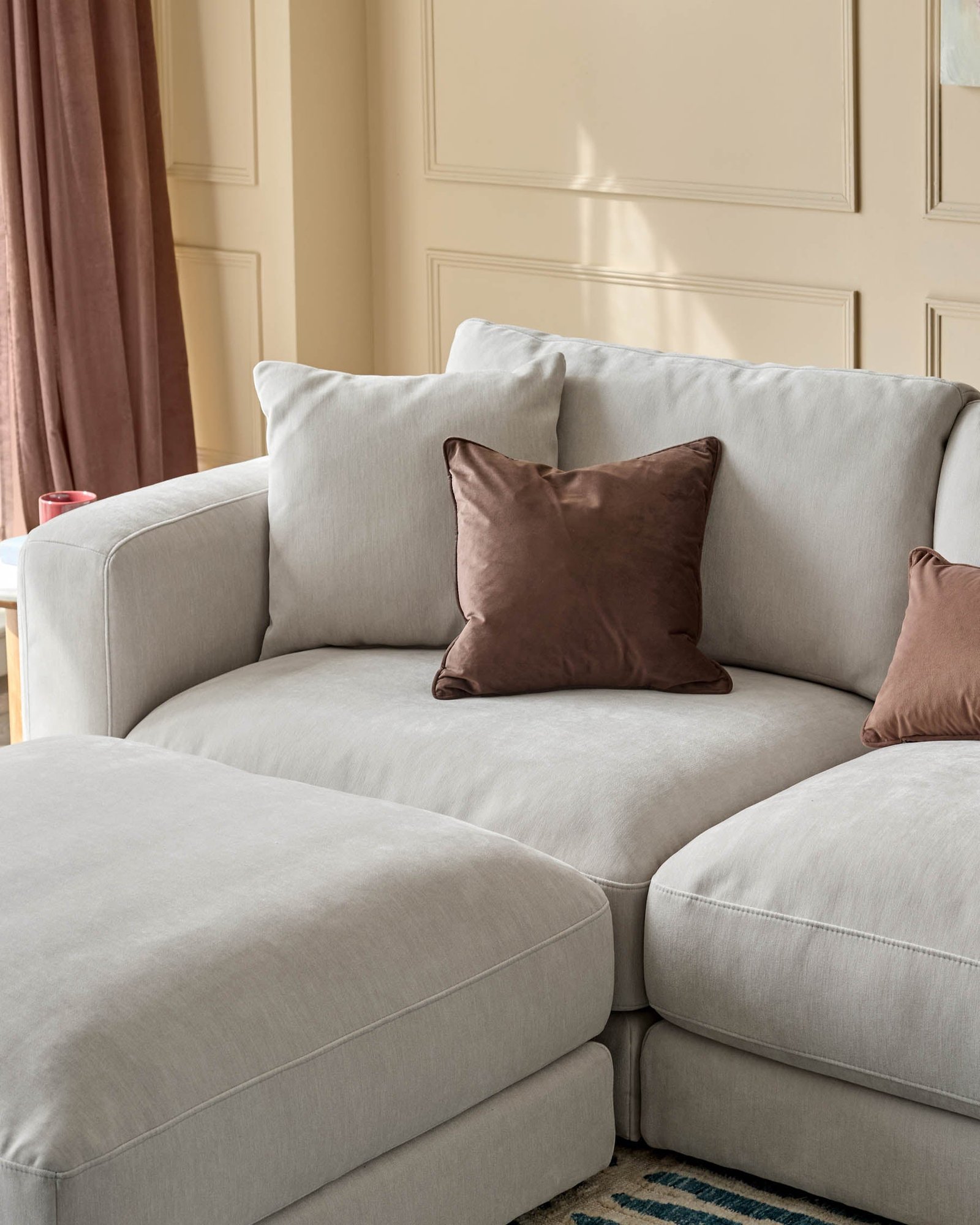 The Lynetta natural grey chenille 3 seater sofa with footstool adapts to your life with modular flexibility and lasting comfort. Its soft chenille fabric in calming grey works beautifully in any setting, while the footstool transforms from chaise extension to extra seating as needed. Deep cushions and supportive shaping ensure this sofa handles everything from quiet evenings to lively gatherings with ease.