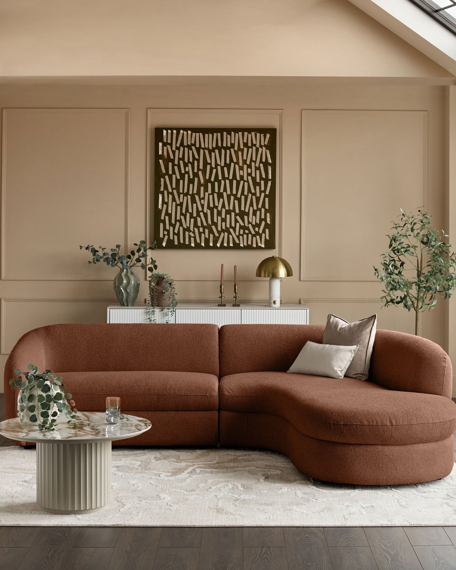 The Ottilie apricot chenille right hand corner chaise sofa brings refreshing warmth to your living space with its soft apricot tone and sculpted curves. Thoughtfully designed with a right-hand configuration that opens up your room, this corner sofa creates the perfect setting for both relaxed lounging and effortless gatherings. The plush chenille upholstery feels beautifully tactile whilst standing strong against daily life.