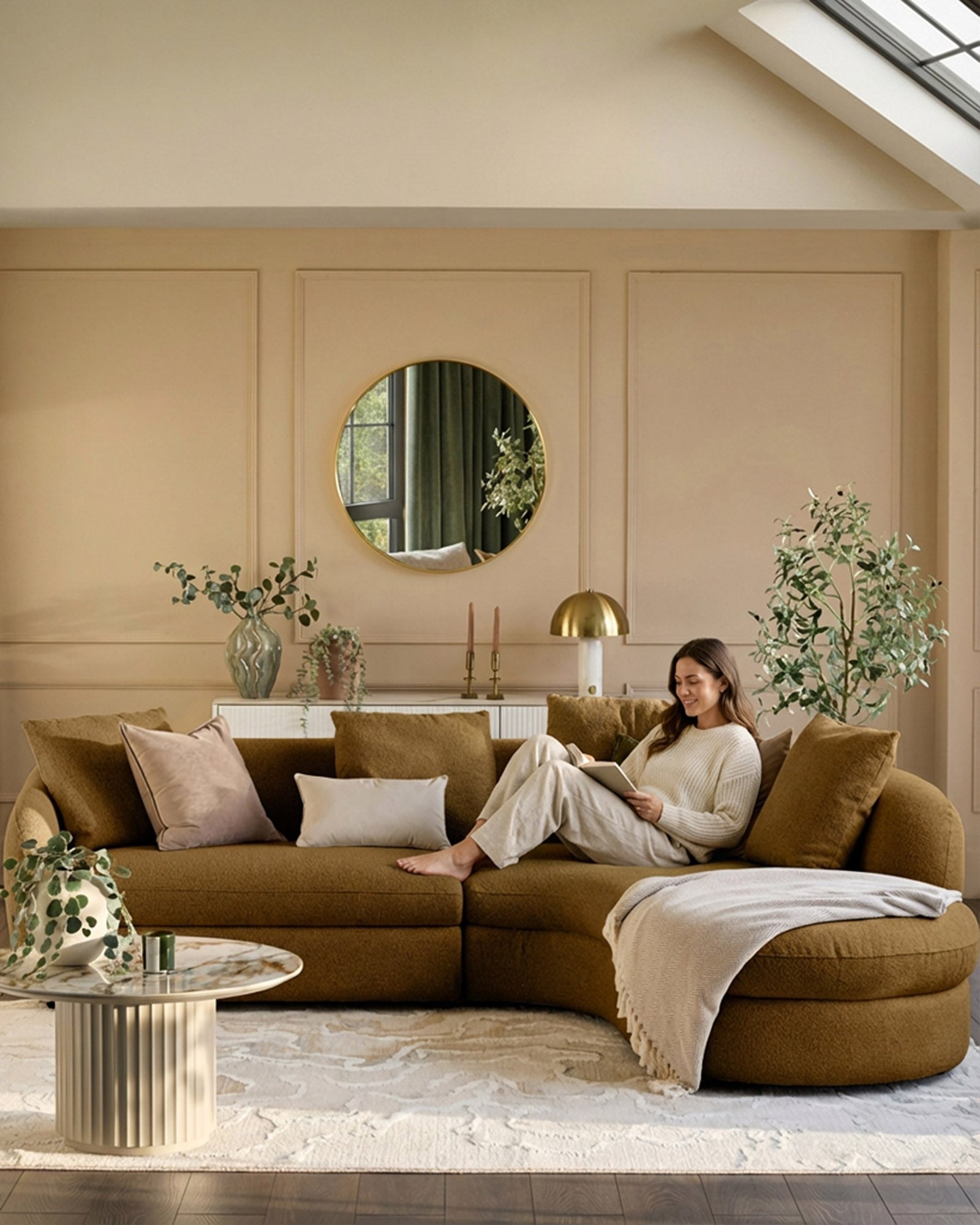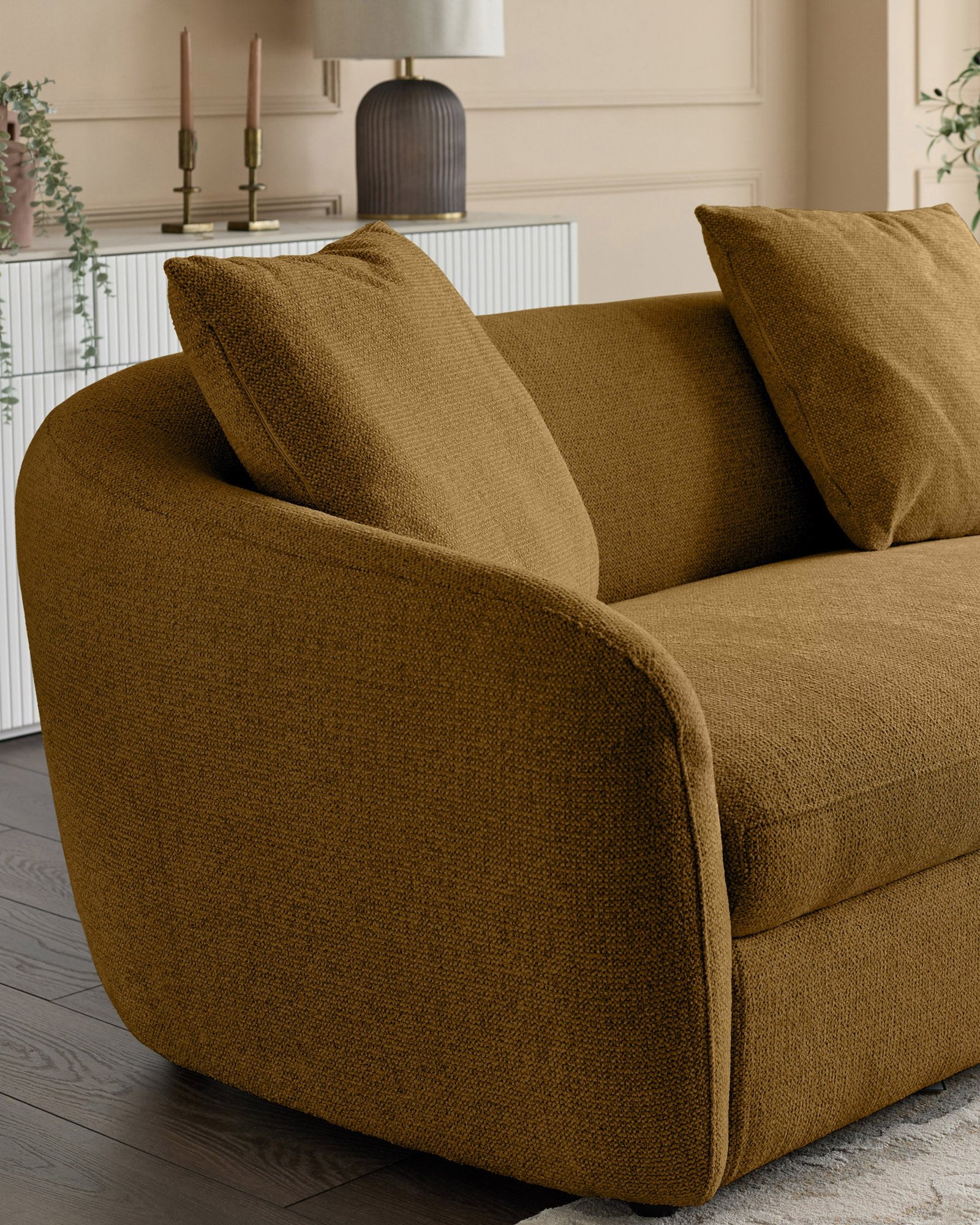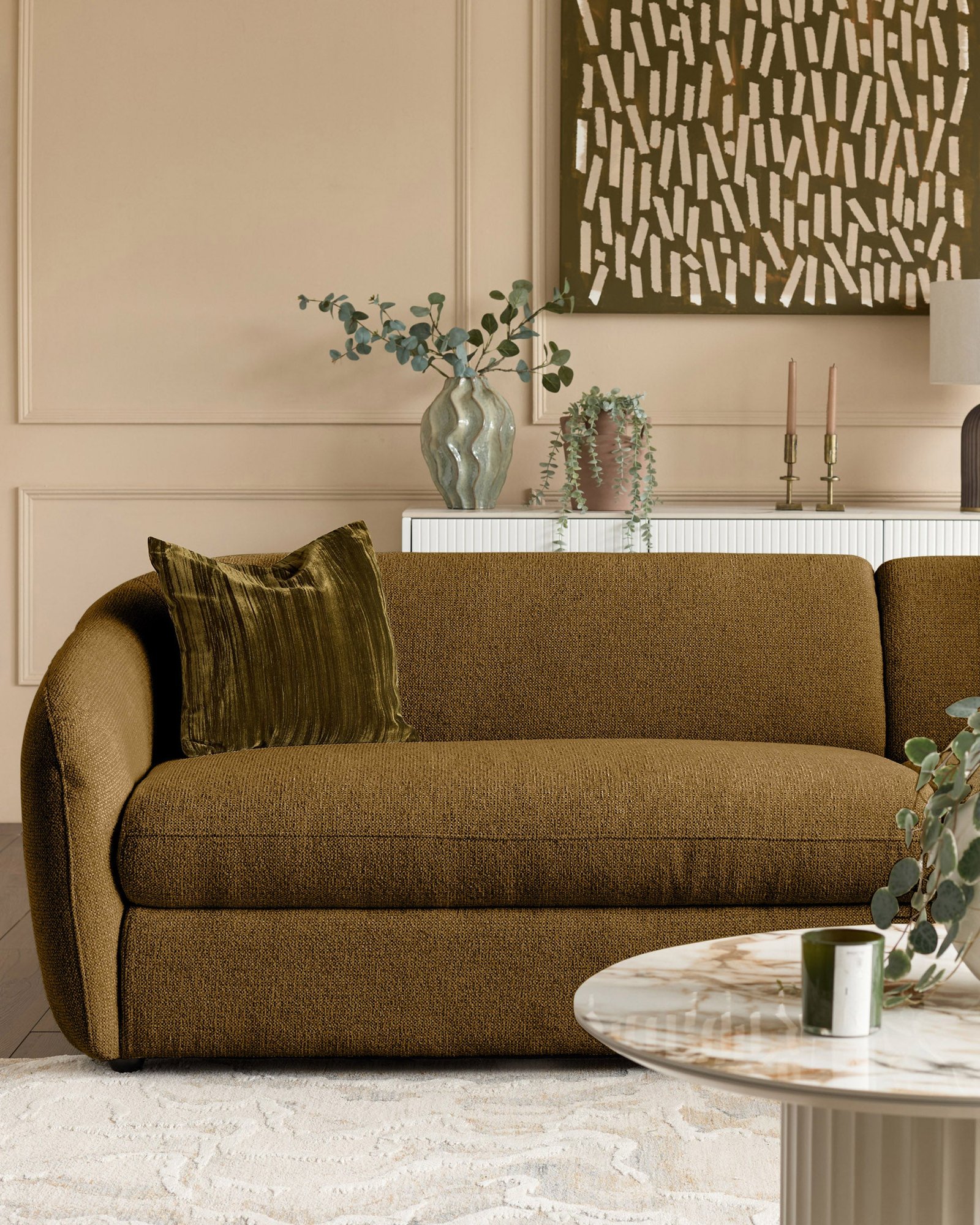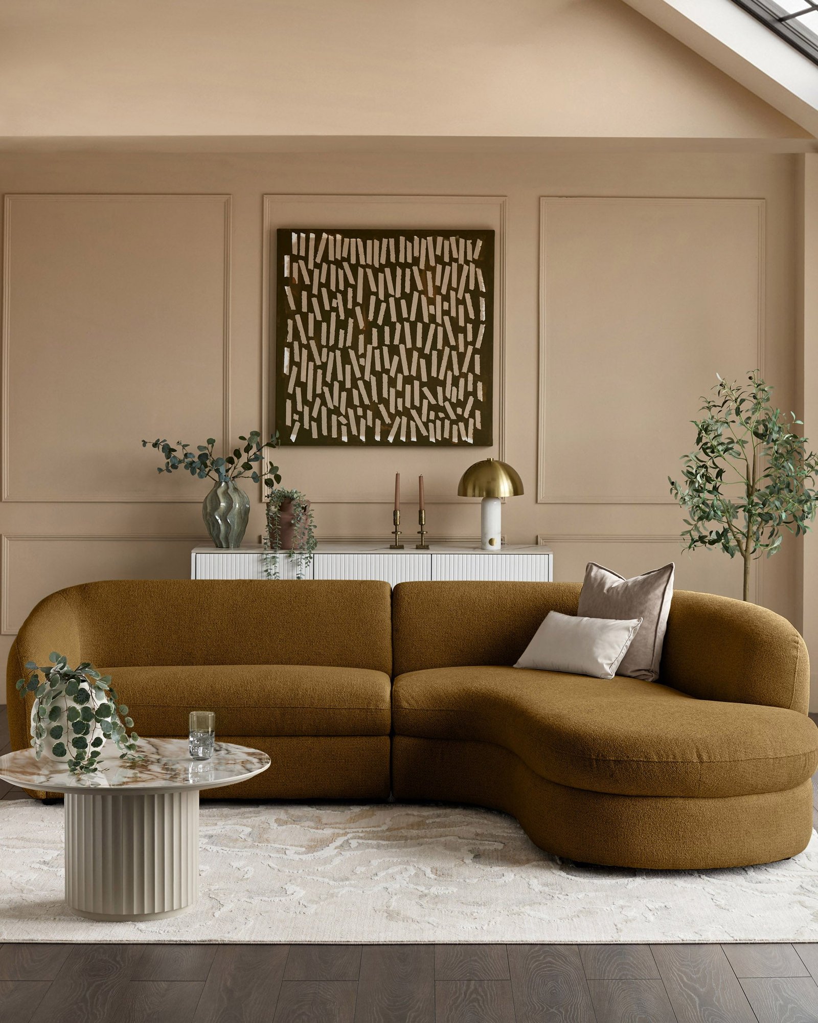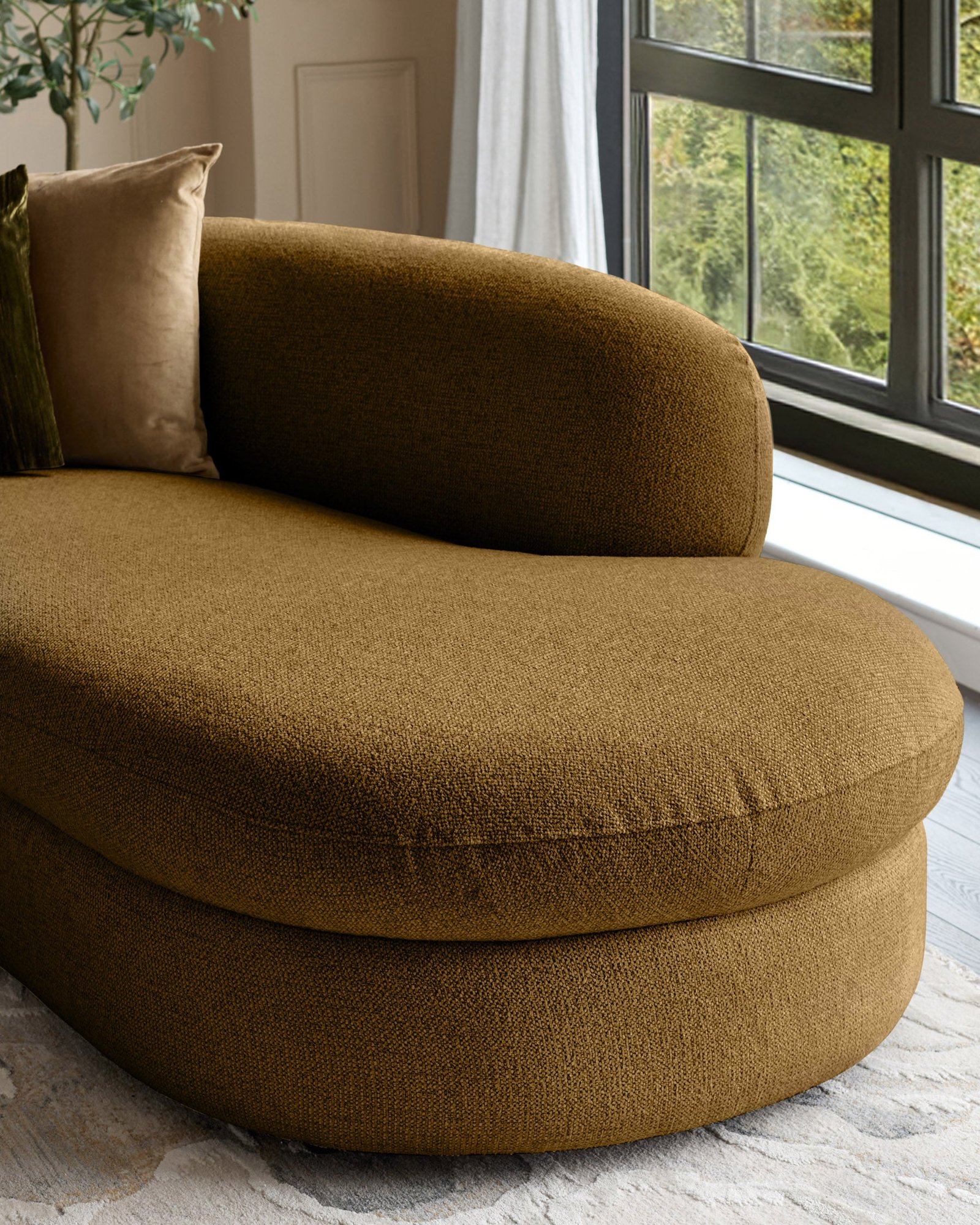 The Ottilie ochre chenille right hand corner chaise sofa brings vibrant warmth and generous comfort to your living space. Its right-hand curve opens the room naturally, while the sculpted cushioning and gentle rise of the back create intentional comfort. Luxuriously soft chenille meets real-life durability in this striking ochre design, perfect for lively evenings and quiet afternoons alike.