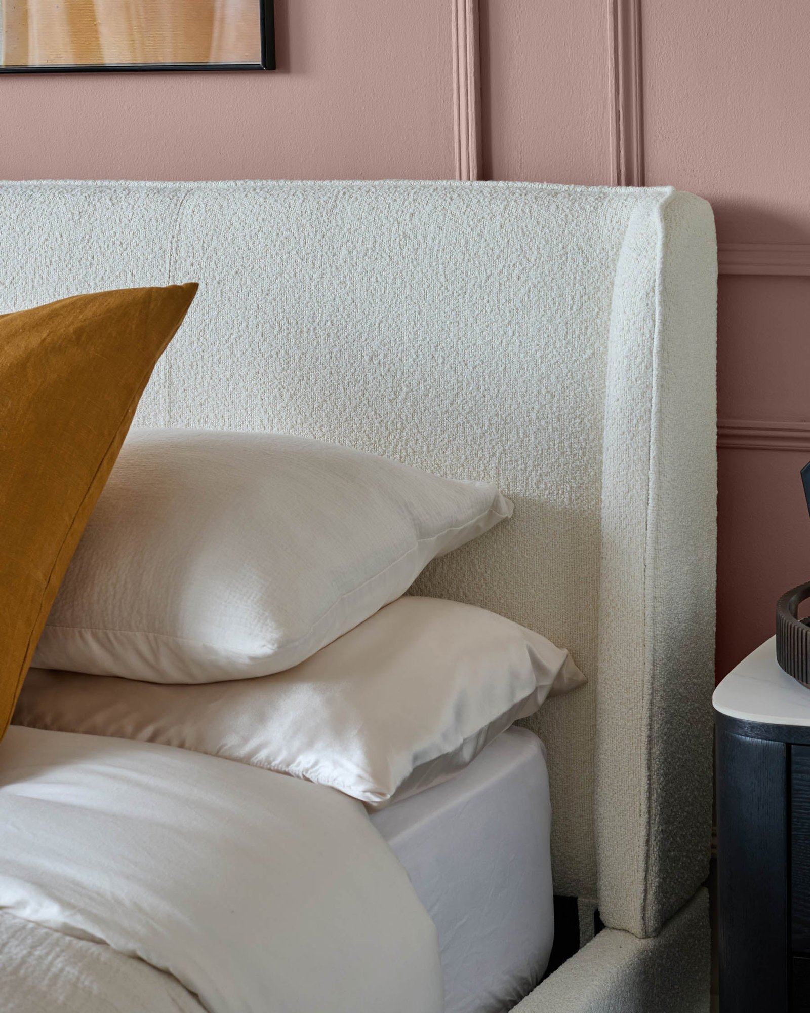 Effortlessly stylish and wonderfully tactile, the Paolo Ivory Boucle double bed transforms your bedroom into a serene retreat. The soft, textured boucle upholstery creates instant warmth while the distinctive winged headboard adds architectural elegance. Built with sprung slats and webbing for optimal mattress support, this thoughtfully designed bed ensures restful nights for years to come.