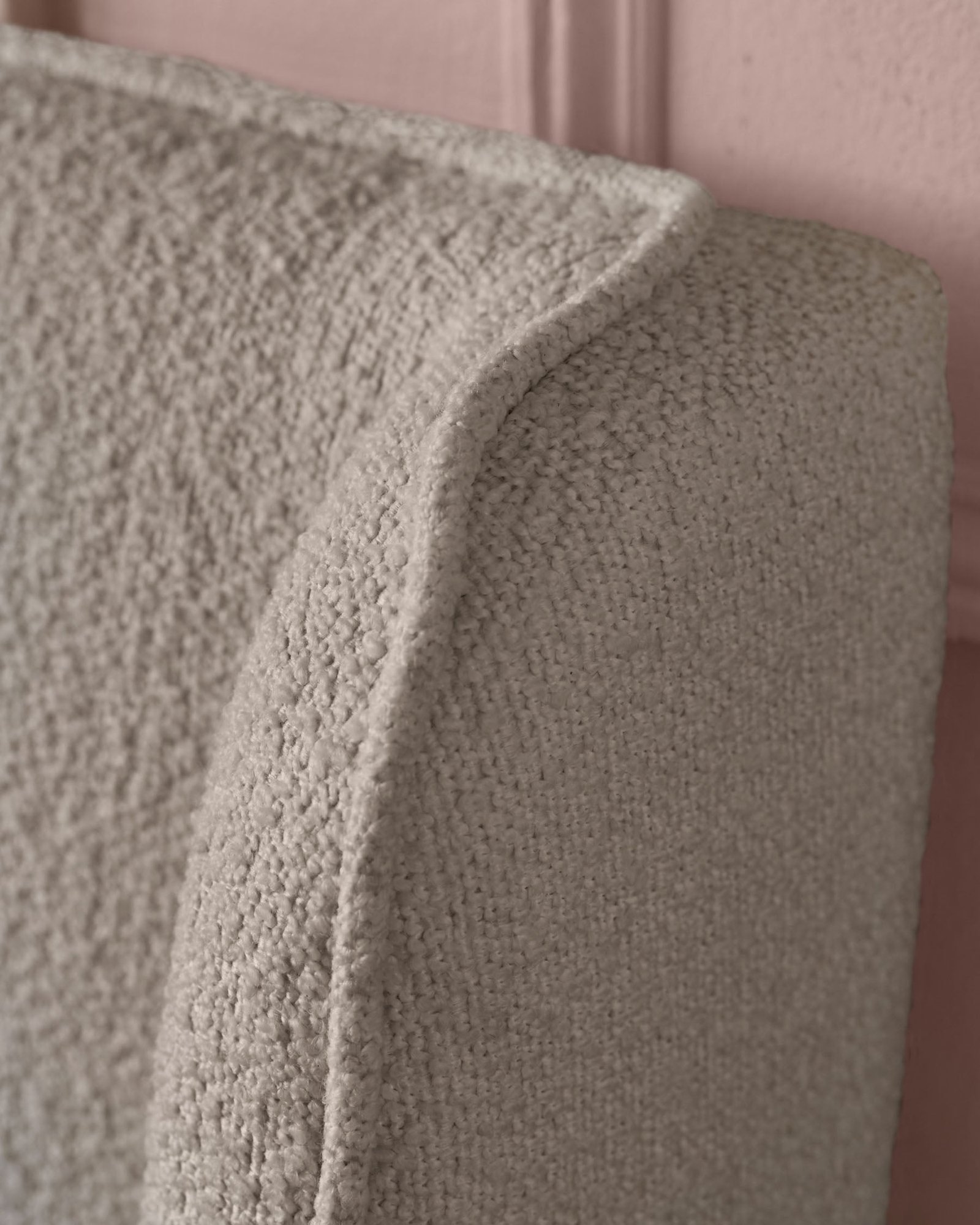 - Soft cream boucle fabric upholstery