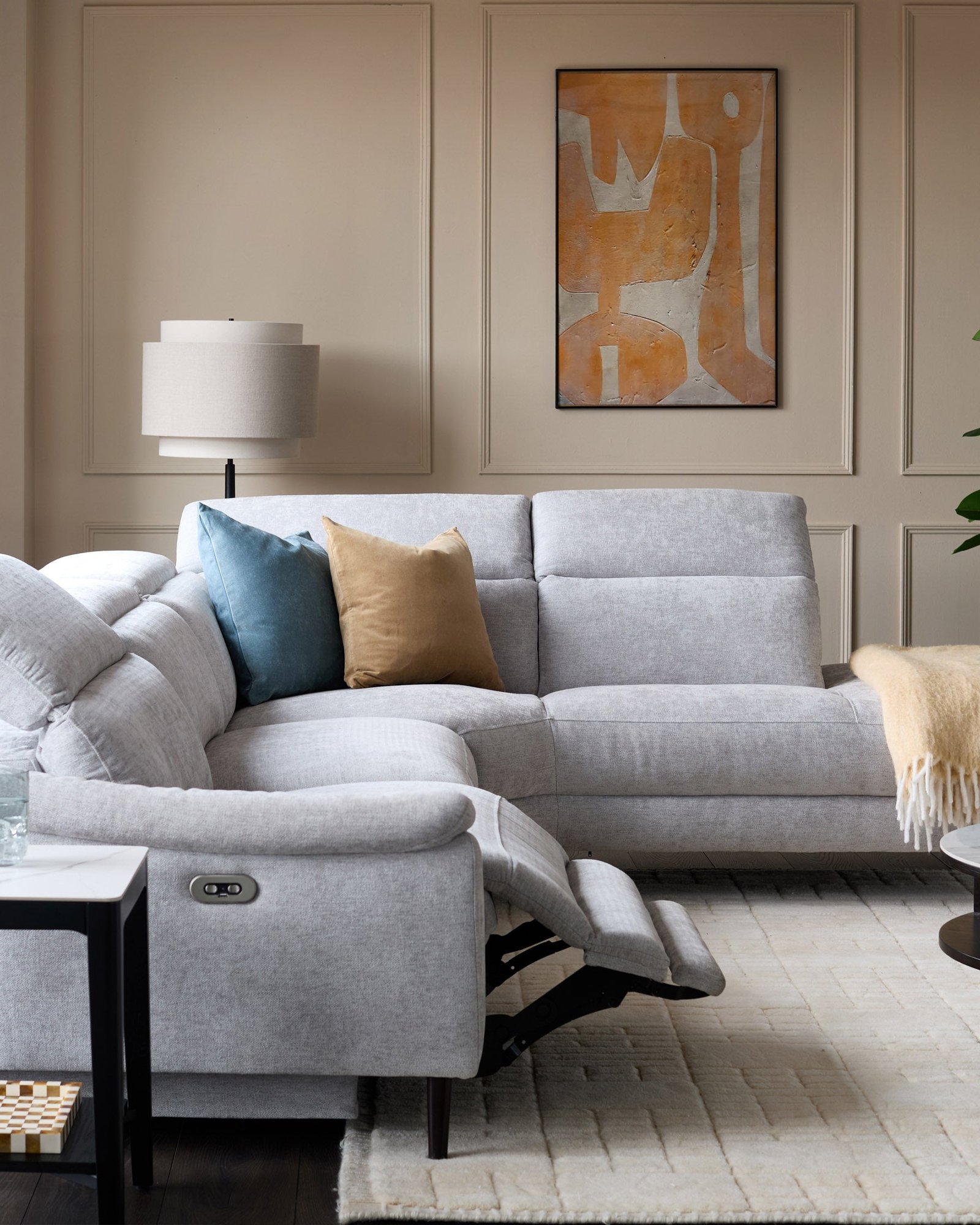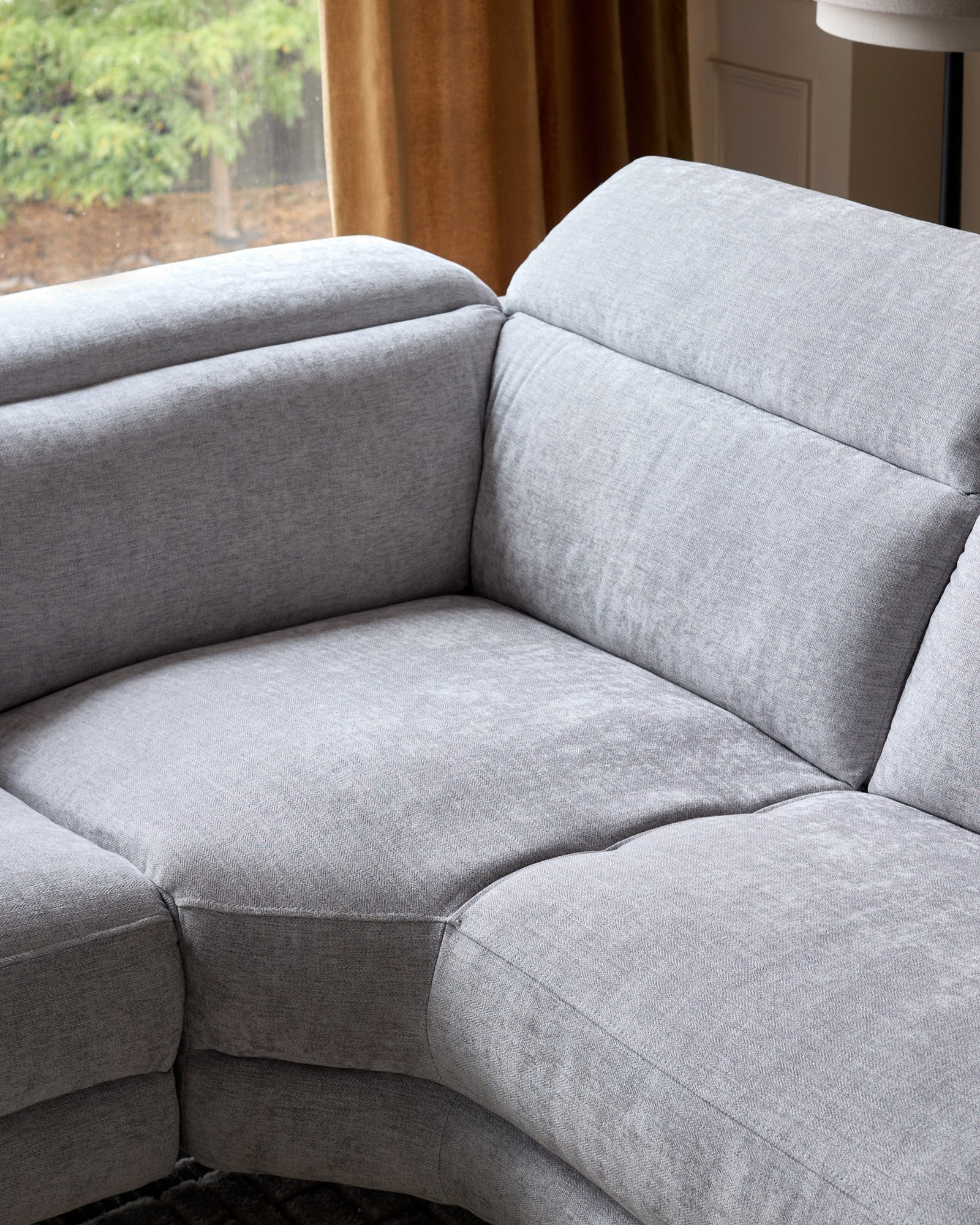 Transform your living room into a relaxation haven with the Serene grey fabric recliner right corner chaise sofa. This spacious corner sofa combines modern comfort with practical luxury – from electric reclining seats to built-in USB charging ports. The soft chenille fabric in neutral grey creates an inviting centrepiece that’s perfect for film nights, lazy Sundays, or entertaining friends.