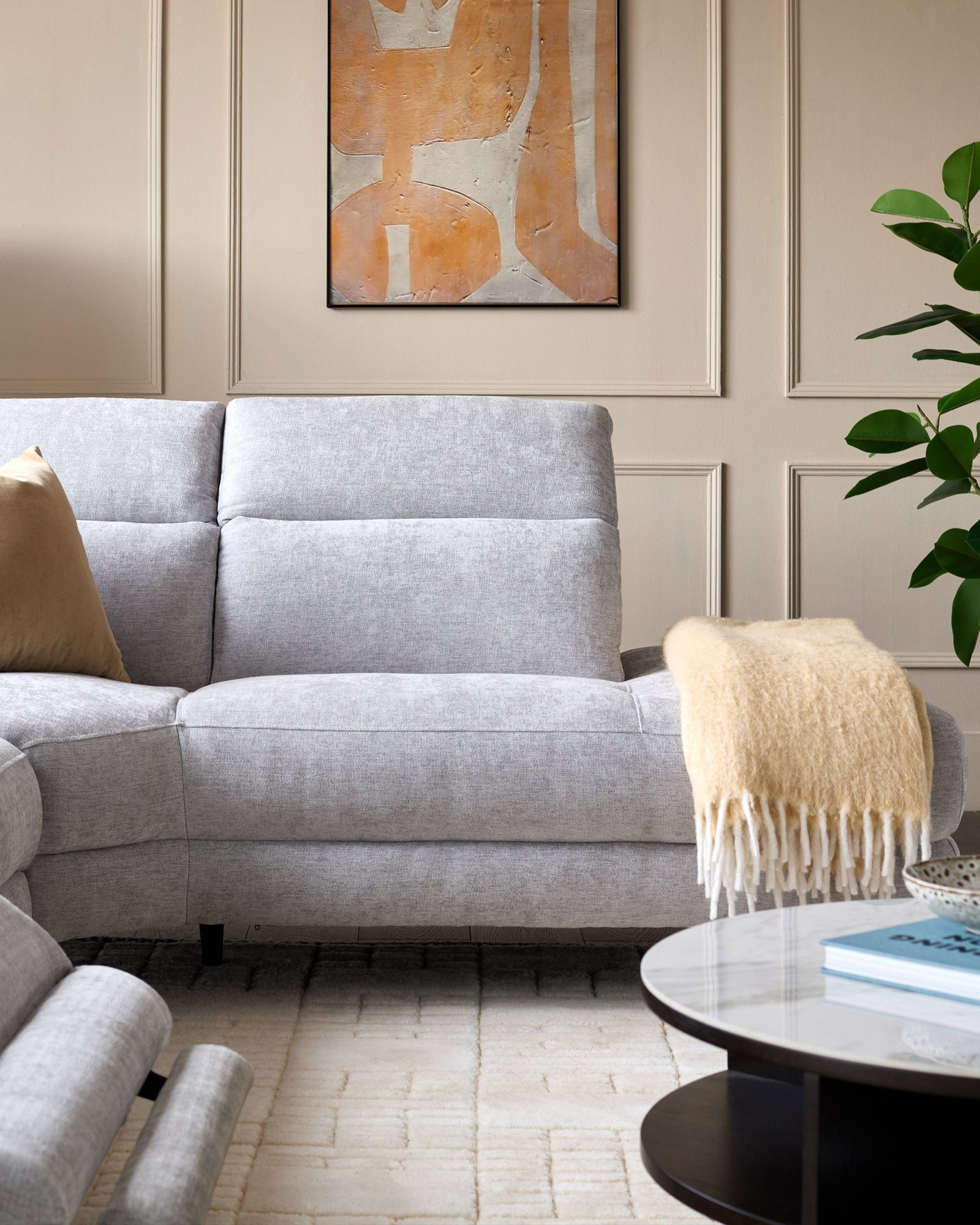 - Soft chenille fabric in light grey with tonal flecks