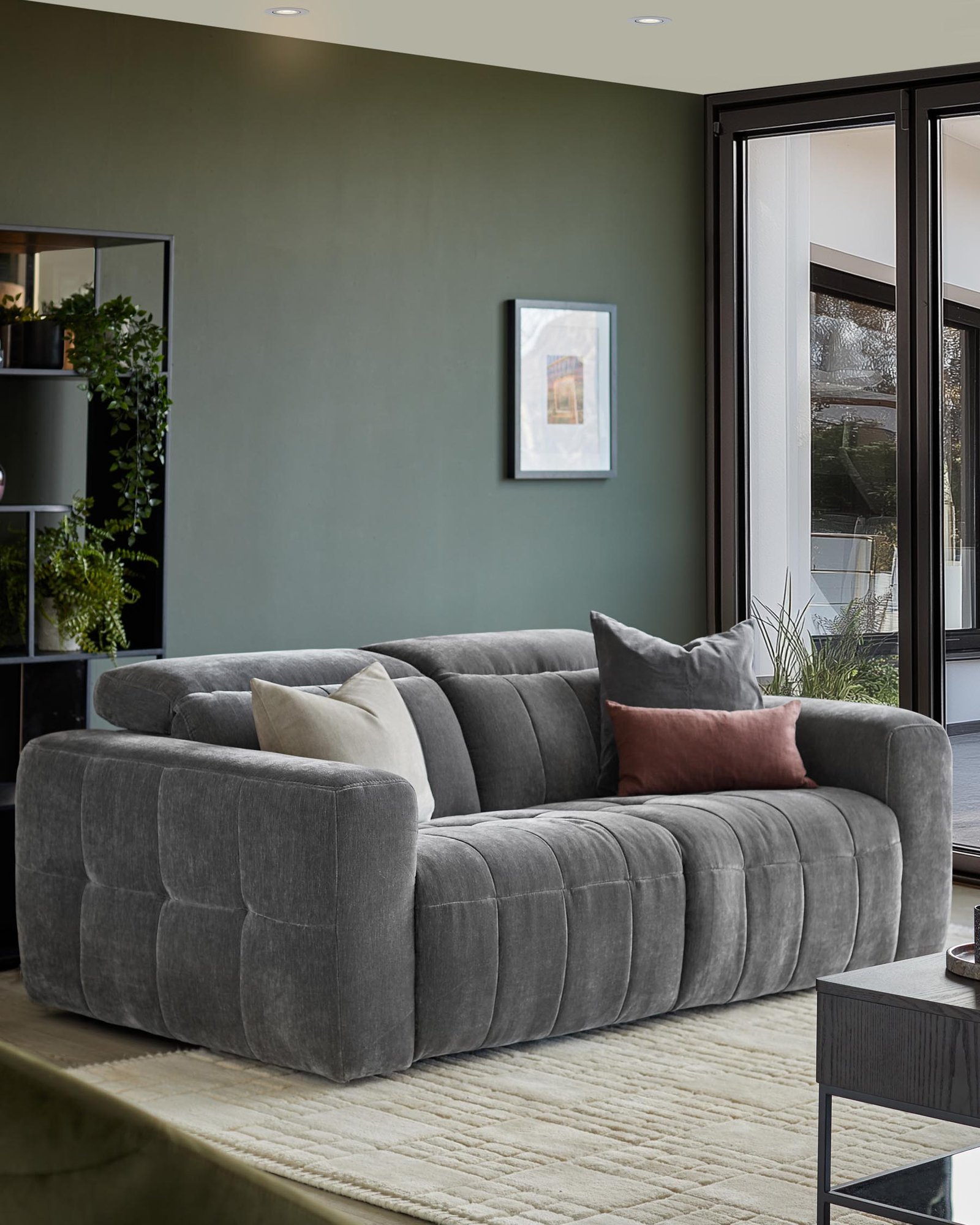 The Skye dark grey fabric 2 seater recliner sofa brings effortless comfort to your living space with electric reclining on both seats. Upholstered in luxurious heritage fabric with distinctive buttoned arm detailing and subtle stitching, this sofa combines style with relaxation. Perfect for living rooms, family spaces or home cinema rooms where comfort matters most.